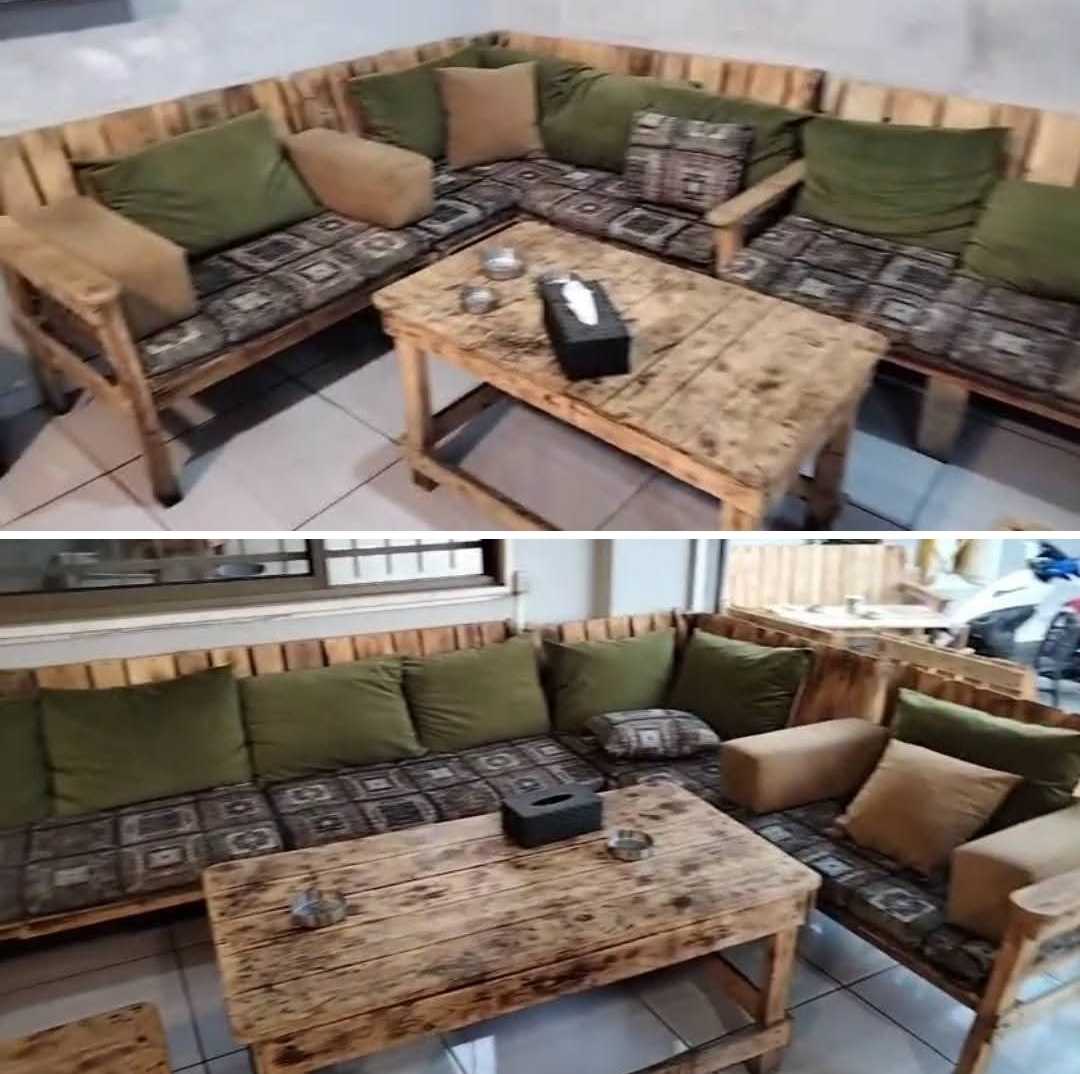 صالون 4 قطع من عند استقبال خشب كتير تقيل وعاليين عن الارض