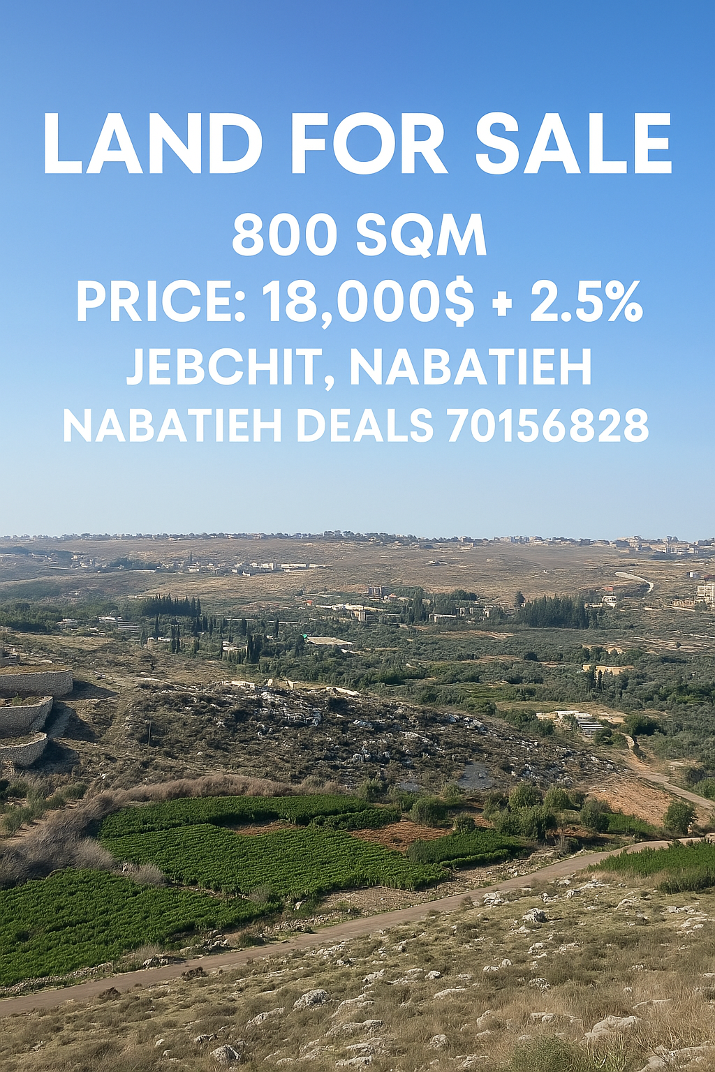 أرض في جبشيت مساحة 800 متر بحاجة ل طريق سند 2400 سهم السعر: 18,000$ + 2.5% تصنيف عمار 15/30 #NabatiehDeals 70156828 WhatsApp: https://wa.me/96170156828 .
