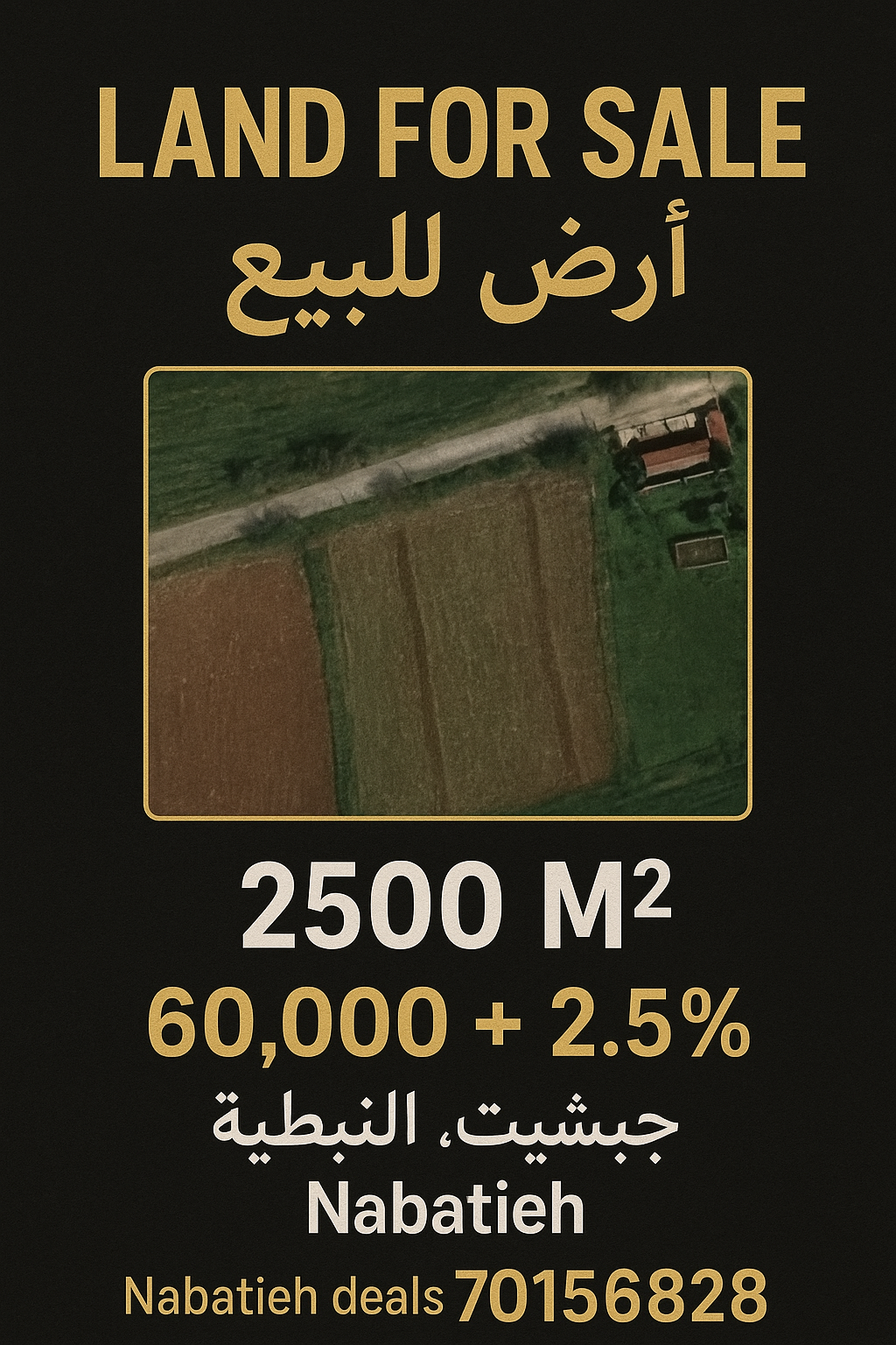 أرض زراعية في #جبشيت 2166 سهم مساحة 2500 متر تقريباً جالسة وشبه مربعة واجهة 40 متر مباشرة على الزفت، طريق القطعة السعر: 60,000$ + 2.5% #NabatiehDeals 70156828 WhatsApp: https://wa.me/96170156828.