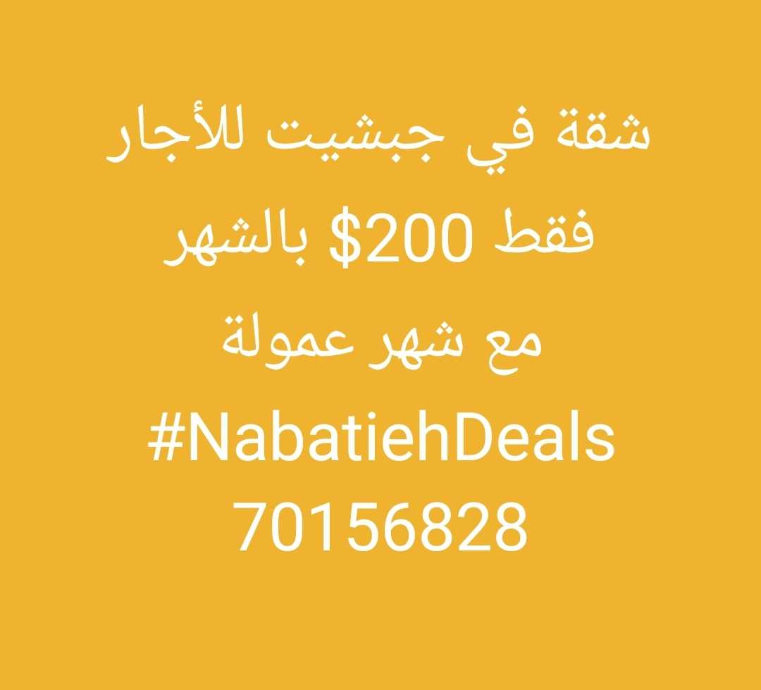 شقة للأجار في جبشيت الأجار: 200$ بالشهر + شهر عمولة #NabatiehDeals 70156828 WhatsApp: https://wa.me/96170156828.