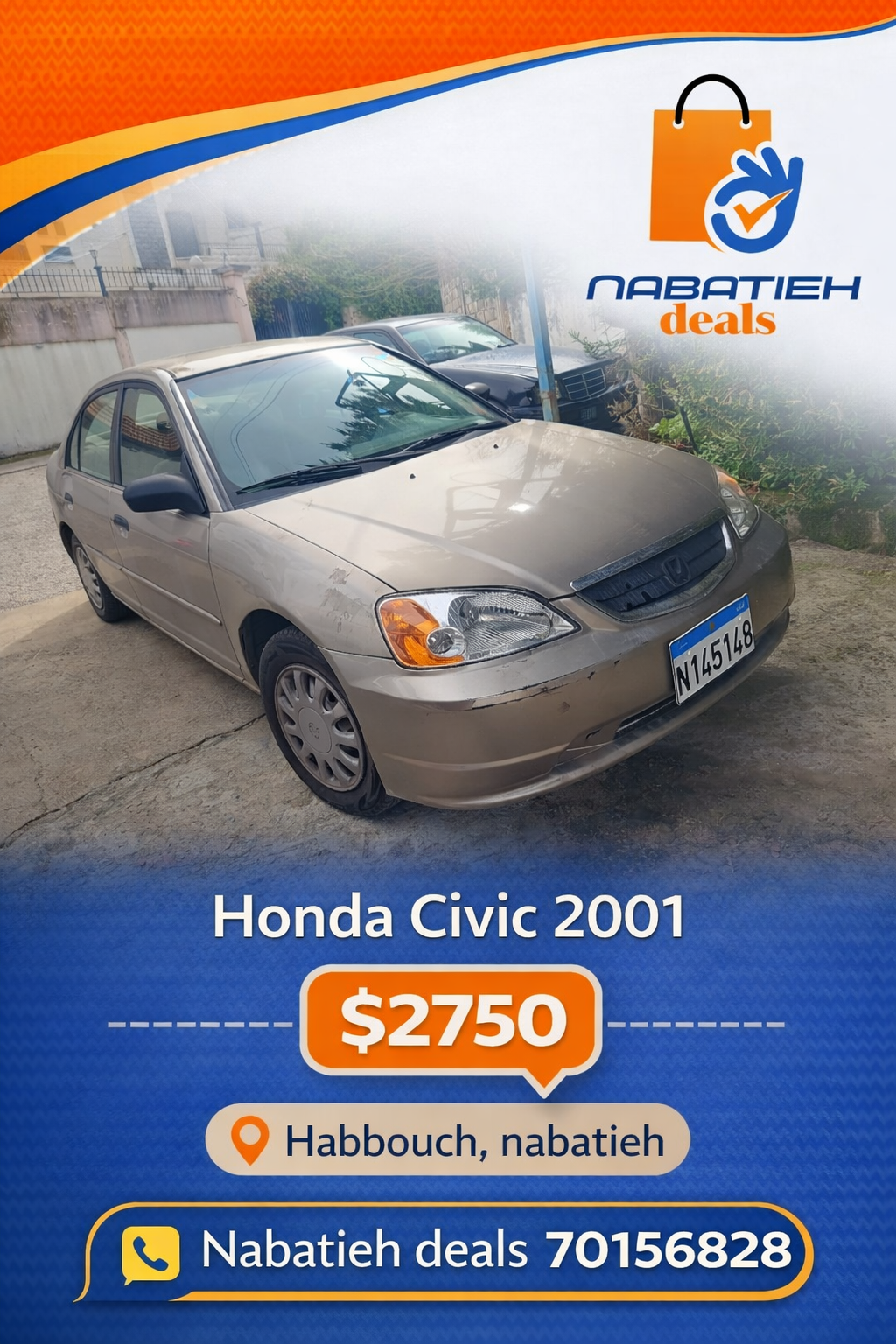 Honda Civic السنة: 2001 فيتاس: عادي تفاصيل: مصروف ممتاز السعر: 2750$ المكان: قضاء #النبطية بلدة #حبوش #NabatiehDeals 70156828 WhatsApp: https://wa.me/96170156828.