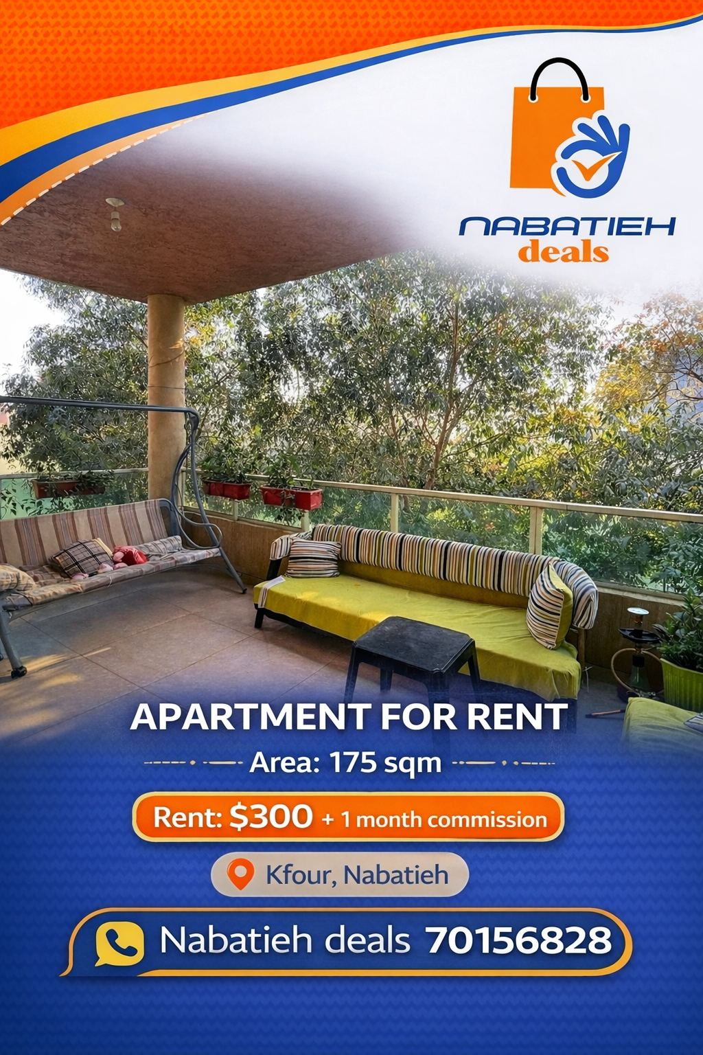شقة كبيرة للأجار المساحة: 175 متر الطابق: الأول الأجار: 300$ + شهر عمولة المكان: قضاء #النبطية بلدة #الكفور #NabatiehDeals 70156828 WhatsApp: https://wa.me/96170156828 .