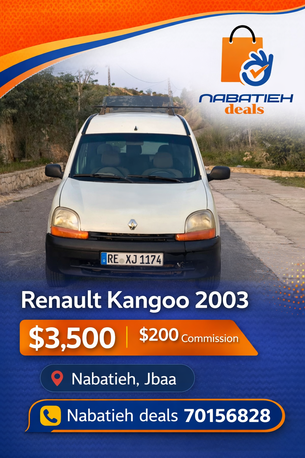 Renault Kangoo 2003 أجنبي، موتير فيتاس ميكانيك ممتاز فيتاس عادي السعر: 3500$ + 200$ عمولة المكان: قضاء #النبطية بلدة #جباع #NabatiehDeals 70156828 WhatsApp: https://wa.me/96170156828.
